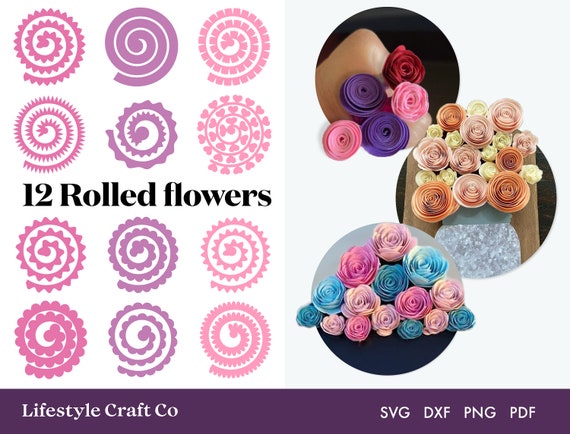 Rolled Paper Flowers Svg 12 Rolled Flower Templates Svg Cut Etsy